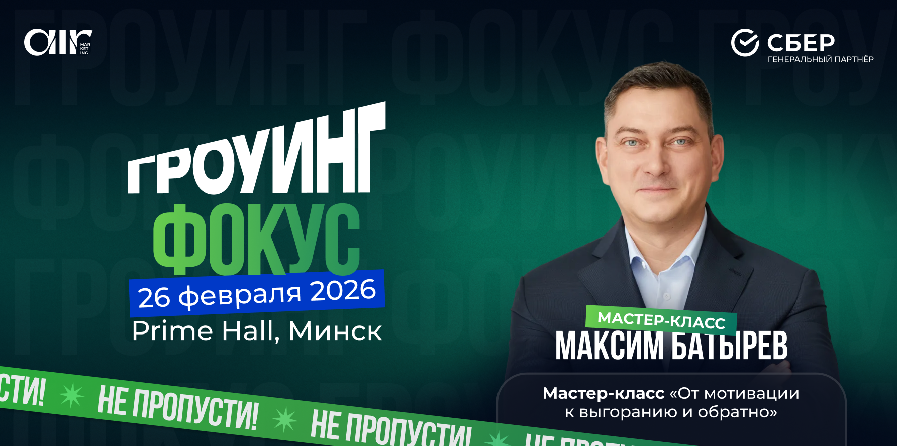 26 февраля 2026 года в Минске состоится бизнес-конференция нового формата "Гроуинг.Фокус", посвященная самой острой проблеме современных компаний – управлению энергией команды и борьбе с выгоранием. Спикером мероприятия выступит один из главных управленческих экспертов СНГ – Максим Батырев.